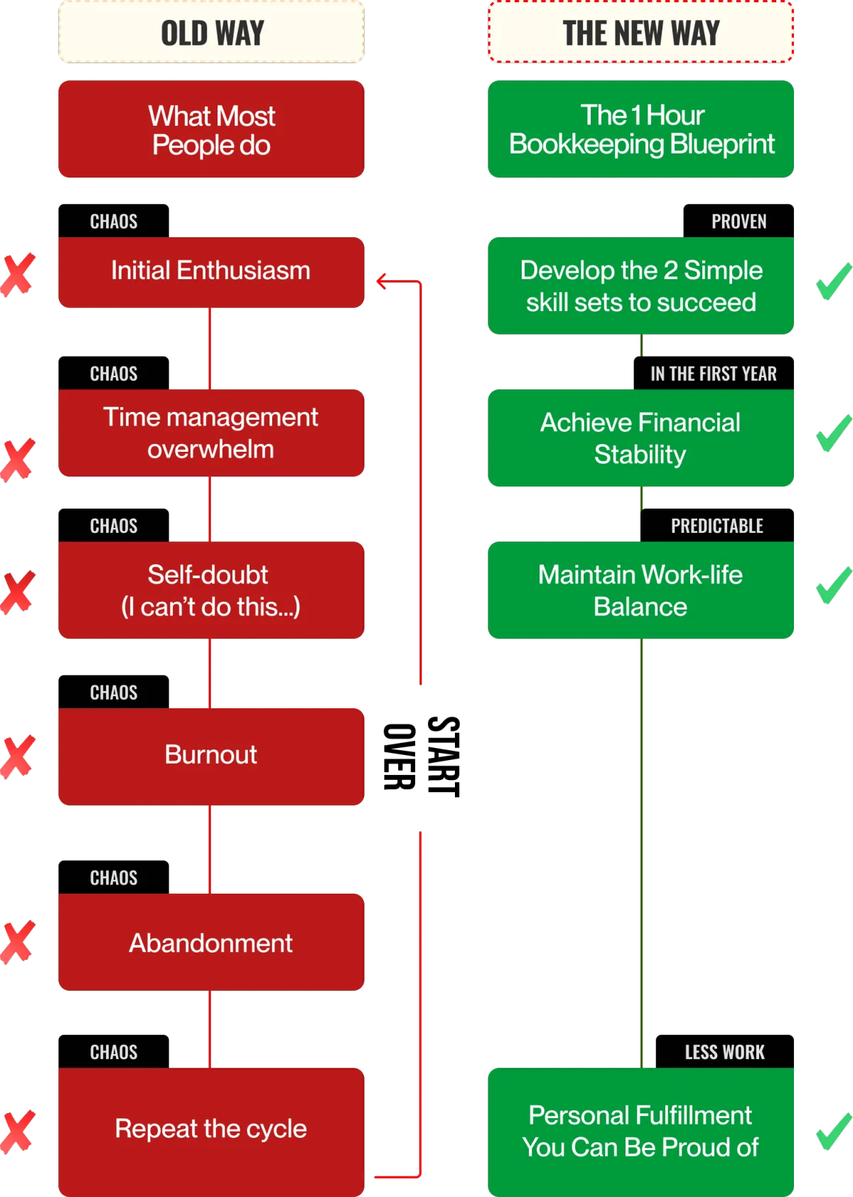 It simply works. And it was designed by a busy Mom, who needed to find an opportunity that was in-demand, easy to fulfill, and provided recurring, stable income. The demand is so high for this service, built in this specific way, that anyone with a work ethic can make this work - even if they have no prior experience in bookkeeping.